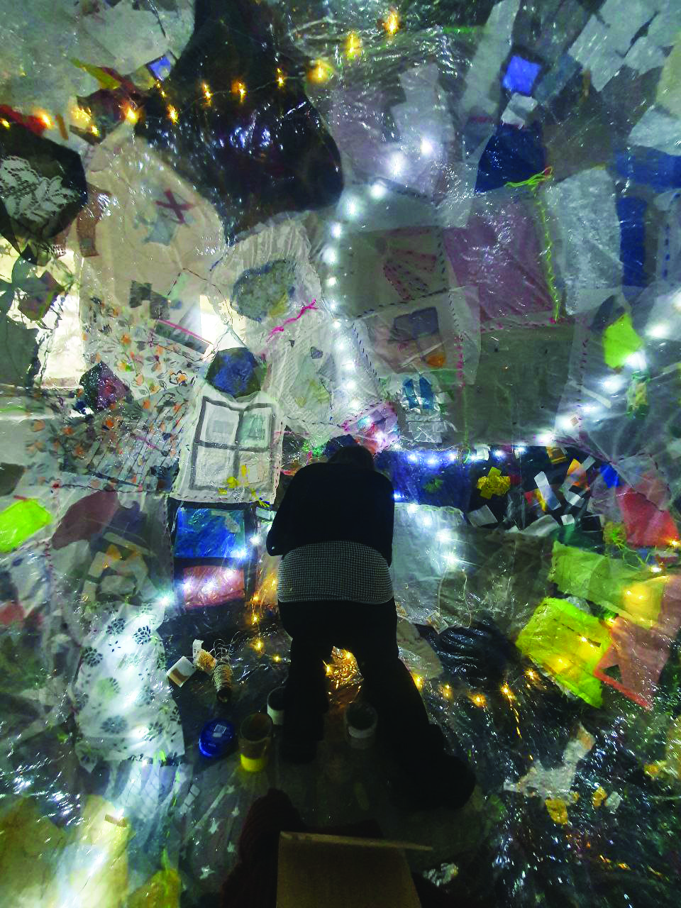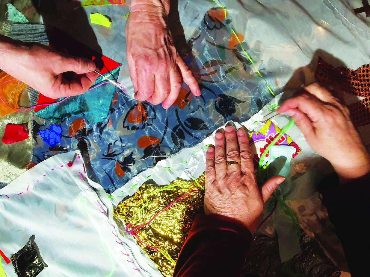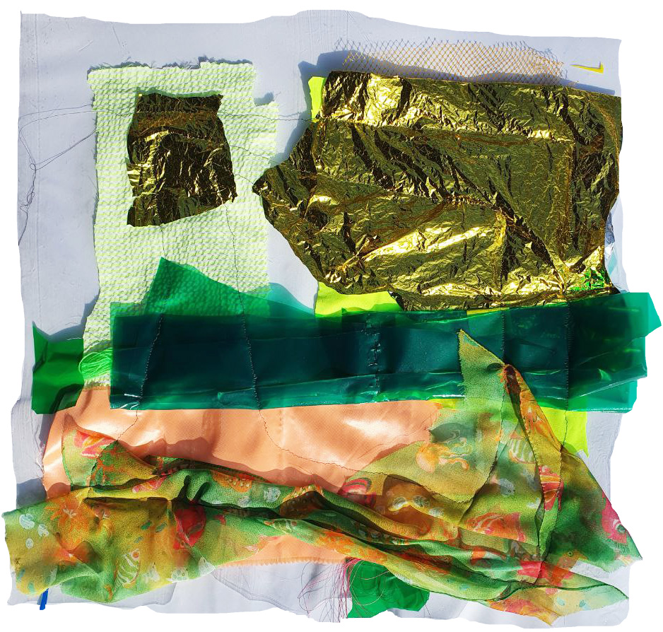 La prima parte da spazio alla sperimentazione e all’immaginazione unendo scampoli di stoffe e ritagli di plastiche riciclate attraverso la tecnica del cucito e della Tape Art, creando infine dei collage personali.
